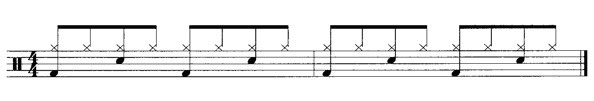 I tell all of my students, “No tempo tantrums. A song shouldn’t be a medley of tempos.” The following exercises work on these areas and then some. The “fill” part is based on the following 1/8 and 1/16 note pattern with the different stickings throughout.